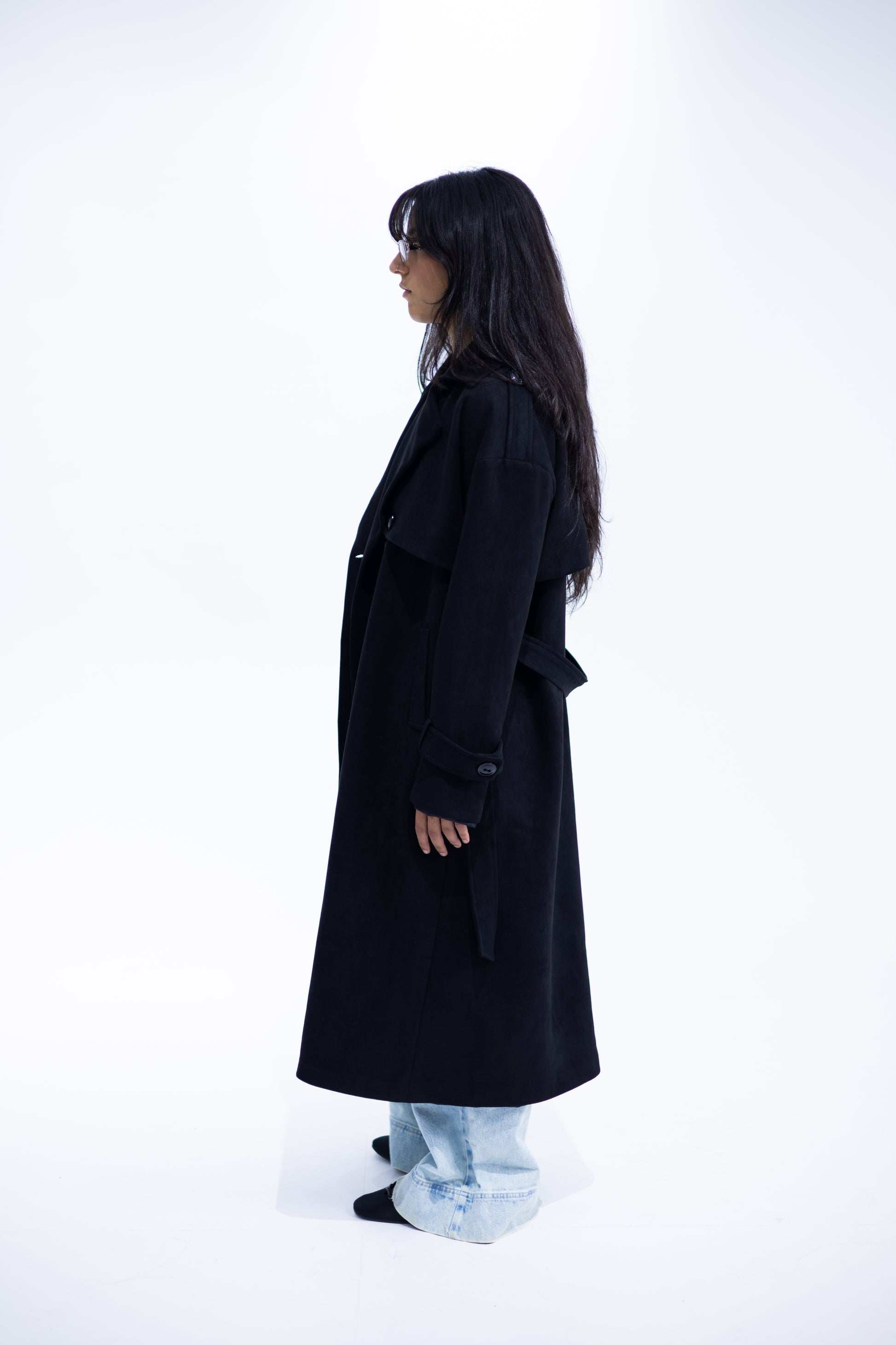 Double-Breasted Suede Trench Coat
